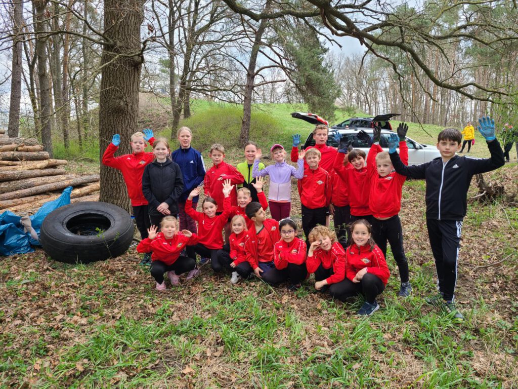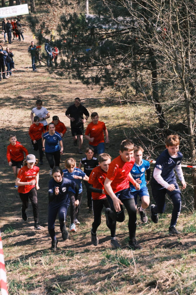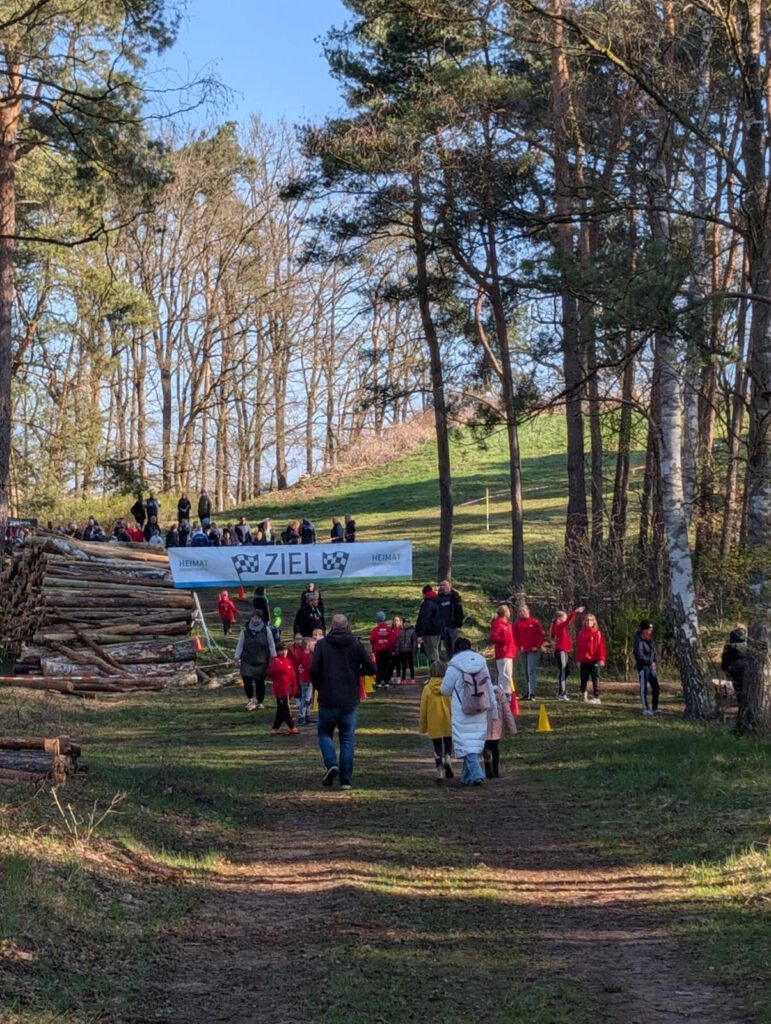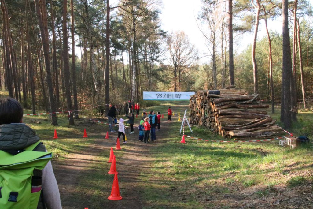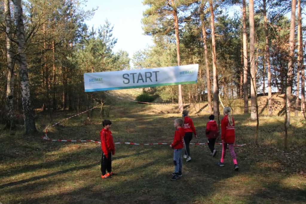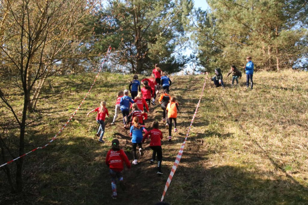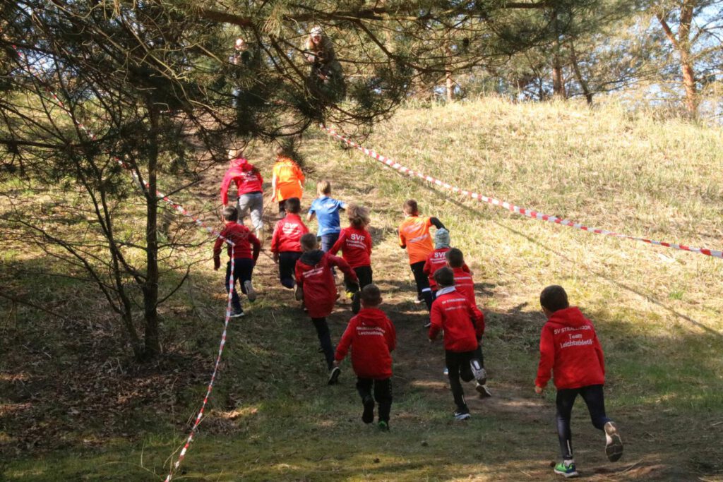 Einen Tag zuvor haben die Leichtathleten den Rodelberg und den umliegenden Wald unweit der Crossstrecke vom Müll befreit und die Strecke vorbereitet. Hier halfen auch einige Eltern. Die Kinder hatten sichtlich Spaß daran. Anschließend wurde die Strecke auch schon abgesperrt.