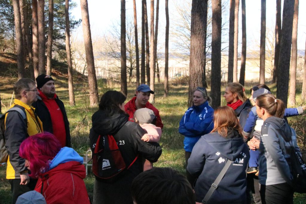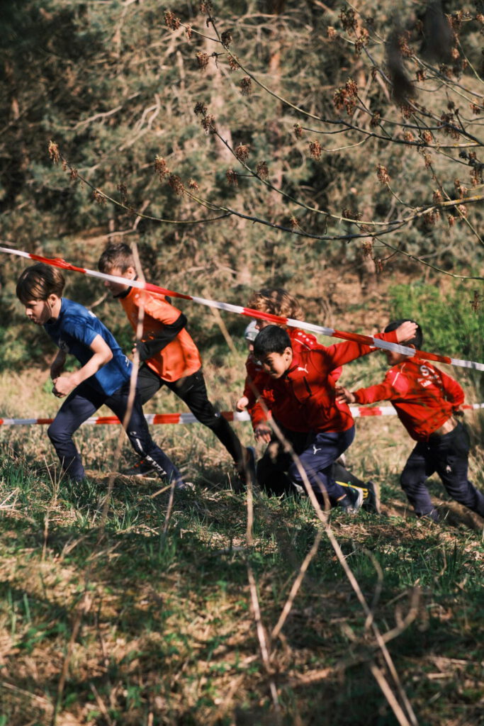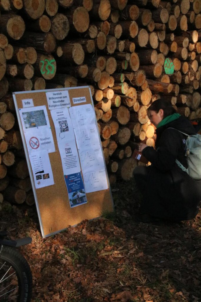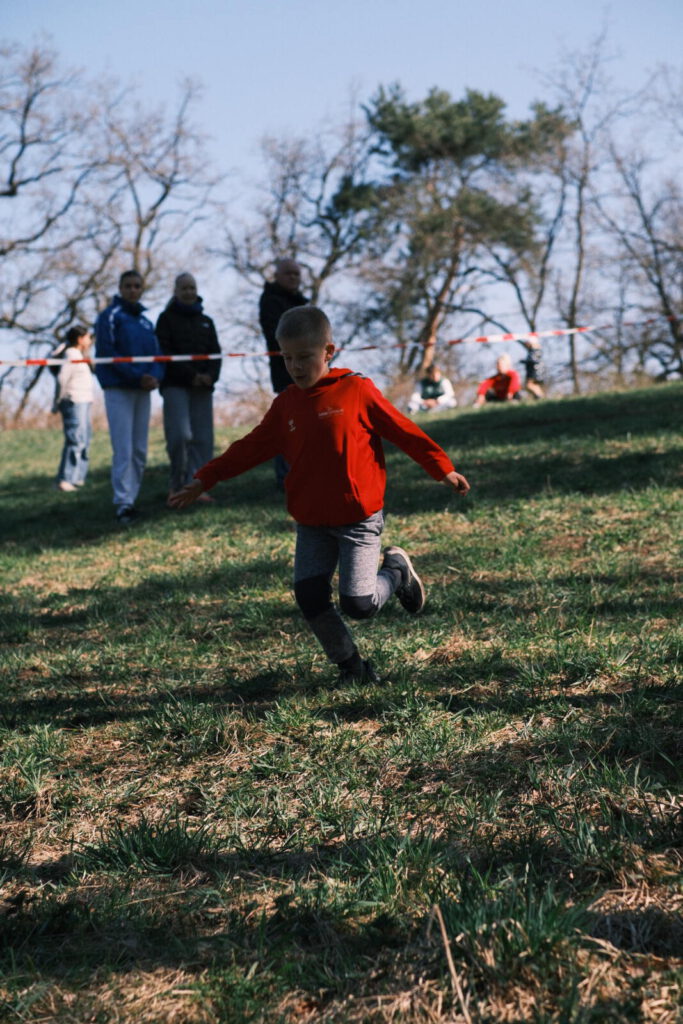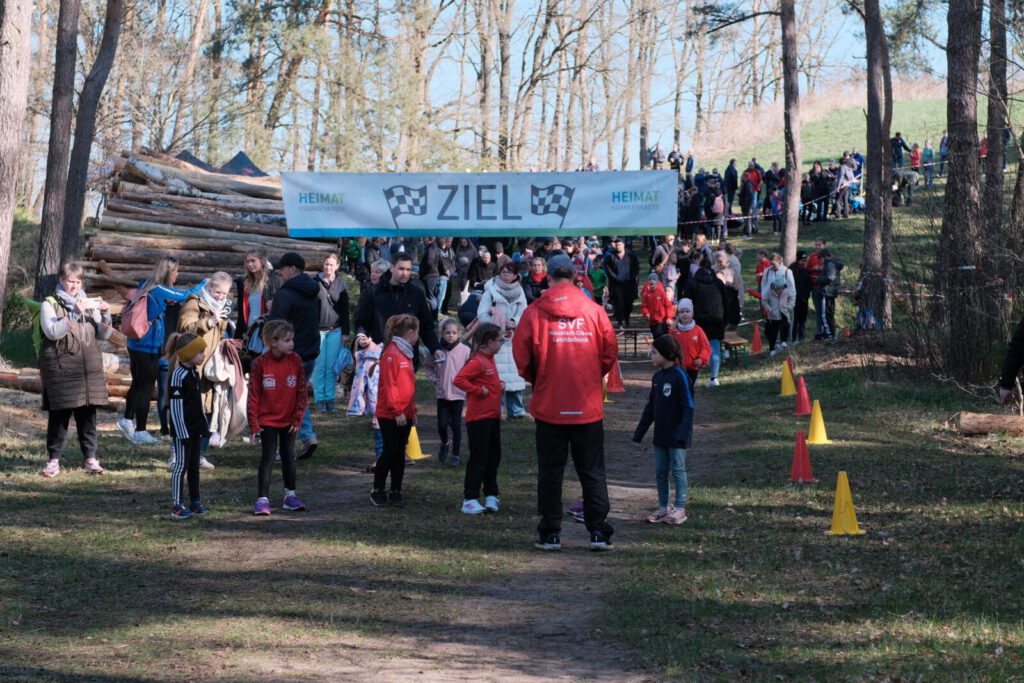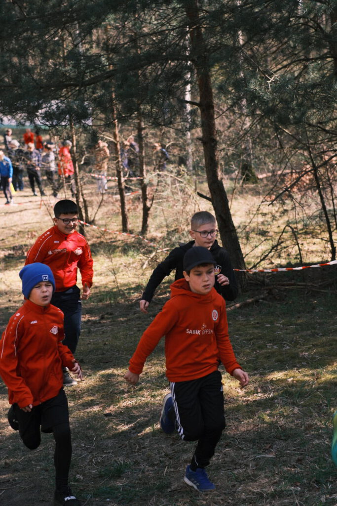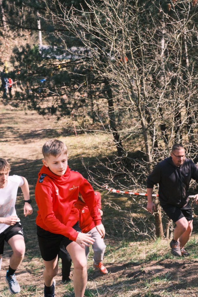 Einen Tag zuvor haben die Leichtathleten den Rodelberg und den umliegenden Wald unweit der Crossstrecke vom Müll befreit und die Strecke vorbereitet. Hier halfen auch einige Eltern. Die Kinder hatten sichtlich Spaß daran. Anschließend wurde die Strecke auch schon abgesperrt.