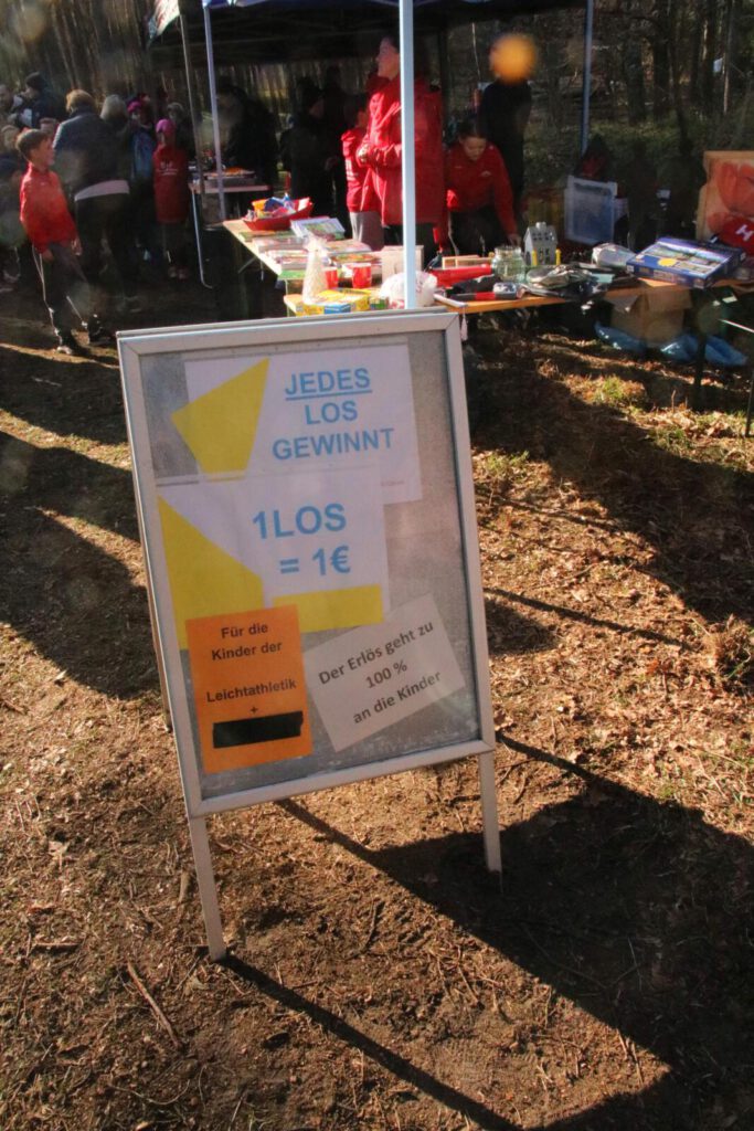 Zur weiteren Organisation gehört das Betreiben eines Versorgungsstandes, der bei jedem Crosslauf einfach mit dabei sein muss. Auch hier standen uns viele Eltern unterstützend zur Seite, zum Beispiel durch Kuchenbacken. Ein Stromaggregat, um frischen Kaffee und auch Bockwurst anbieten zu können, musste organisiert werden. Obendrauf gab es auch eine Tombola mit kleinen Preisen. Für die Betreuung des Verkaufstand konnten wir ebenfalls Eltern und Großeltern gewinnen.