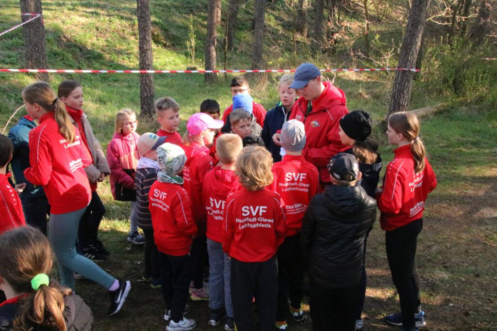 Das Wetter spielte wieder sehr gut mit, als wir am Samstag, den 11. April 2026 um 07:00 Uhr mit dem Aufbau anfingen. Der Wettergott blieb uns auch danach weiter gewogen. Unsere Leichtathleten waren pünktlich um 08:45 Uhr zur Erwärmung vor Ort. Insgesamt 38 Neustädter Leichtathleten nahmen am hauseigenen Crosslauf teil und nutzten den wertvollen Heimvorteil. Damit die Trainer sich um den Ablauf kümmern konnten, wurden die Athleten durch unser seit März 2025 bestehendes Junior-Trainerteam ausgiebig erwärmt. Gegen 09:15 Uhr trafen die ersten Vereine aus dem Kreis ein und machten sich mit der Strecke vertraut. Auch in diesem Jahr wurden Flyer an die Schulen in Neustadt-Glewe verteilt. So nahmen auch 17 Schüler der Johann-Wolfgang-von-Goethe-Grundschule mit Erfolg teil.
