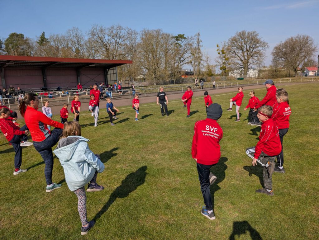 Begonnen hat der 4. Neustädter Laufcup am Sonntag, den 23. März 2025 um 10:00 Uhr, im Stadion der Lederwerker in Neustadt-Glewe. Bei frühlingshaften Temperaturen und viel Sonne gingen insgesamt 30 Läufer im Alter von 6 bis 13 Jahren an den Start. Mit diesem Teilnehmerfeld, war das Neustädter Trainerteam sehr zufrieden, auch wenn es im letzten Jahr zum Start sieben Athleten mehr waren. Für die jüngeren Teilnehmer im Alter von 6 bis 11 Jahren, führte die erste Strecke durch die Straßen der Kuhdrift. Bis zu 3 km sollten die Kinder laufen, um ihre Ausdauer zu steigern. Die älteren Athleten im Alter von 12 bis 14 Jahren sollten 5 bis 6 km laufen und hatten eine Strecke, welche zur Elde bei Klein Laasch, dann zum Flugplatz Neustadt-Glewe und zurück zum Sportplatz führte. Dieses Jahr sollte es für die Läufer der größeren Strecke, die an allen Läufen teilnehmen auch einen großen Pokal geben. So nahmen hier auch gute Läufer aus den jüngeren Altersklassen ab 10 Jahren teil und liefen die große Strecke. Alle Teilnehmer haben den ersten Lauf erfolgreich beendet.
