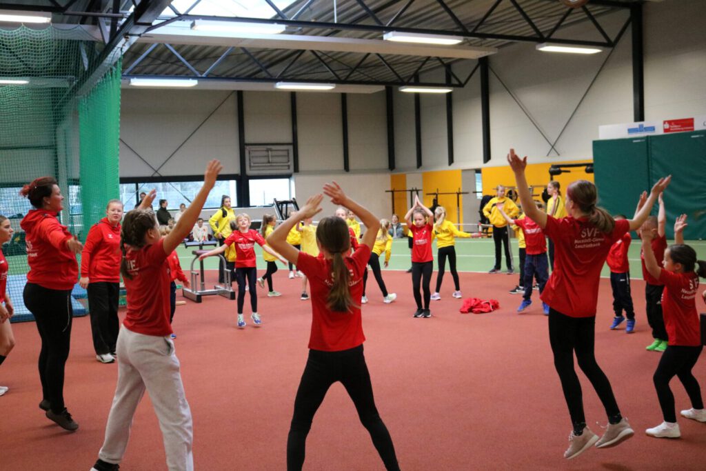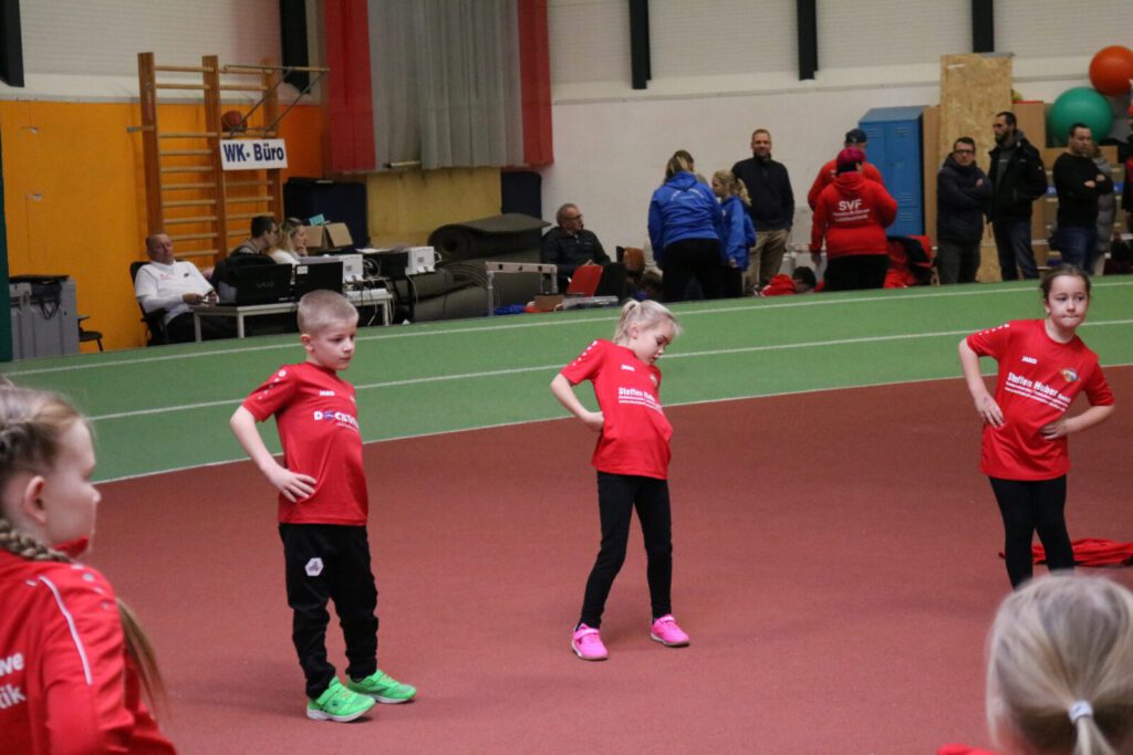 Danach fanden die Einzelwettbewerbe in den Disziplinen 50m-Sprint, Weitsprung, Medizinballschocken und 400m- (U8) bzw. 800m- (U10) Lauf zunächst für alle Kinder bis zur Altersklasse U10 statt. Bedingt durch die geringe Größe der Halle, durften nur ca. 120 Sportler mit ihren Eltern gleichzeitig in der Halle sein.